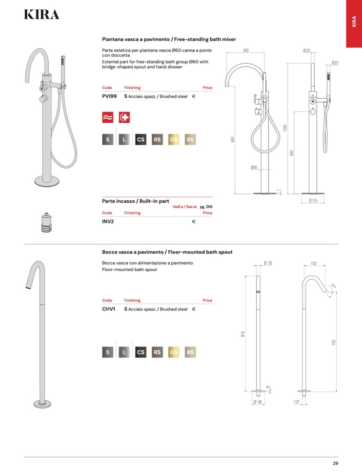Bocca vasca a pavimento / Floor-mounted bath spout