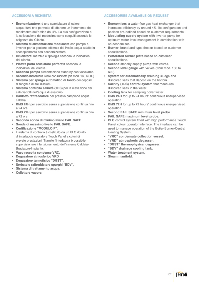 • Bruciatore: marchio e tipologia secondo le indicazioni