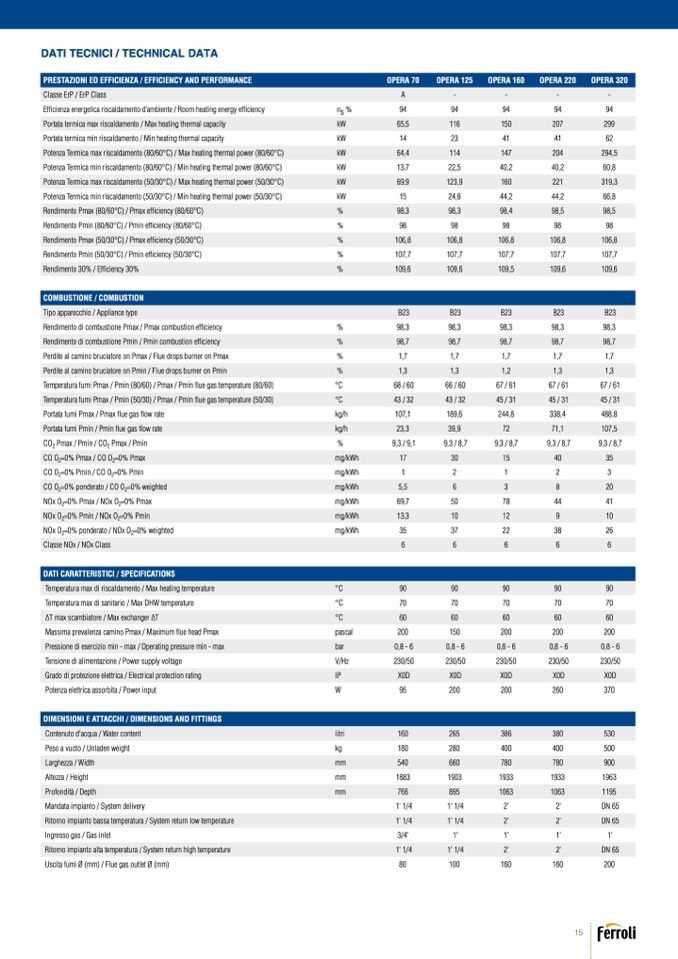 Temperatura fumi Pmax / Pmin (50/30) / Pmax / Pmin flue gas temperature (50/30)
