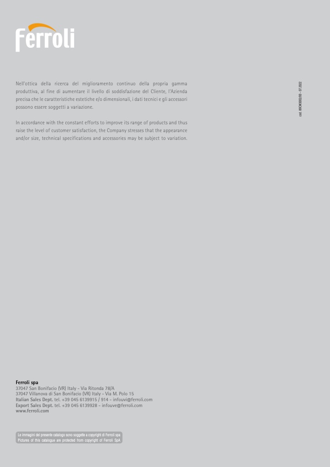 Pictures of this catalogue are protected from copyright of Ferroli SpA