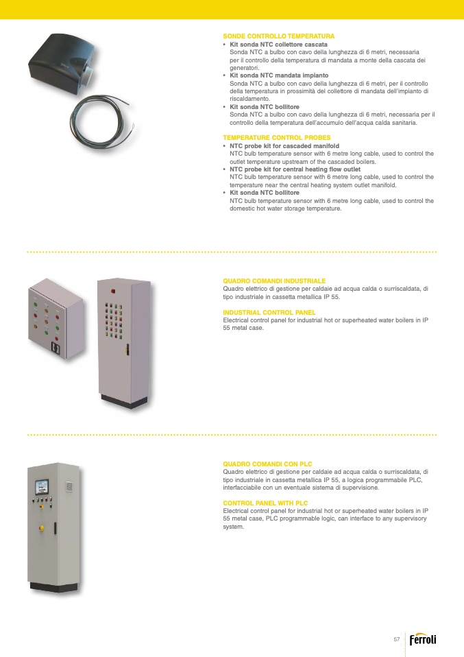 Quadro elettrico di gestione per caldaie ad acqua calda o surriscaldata, di