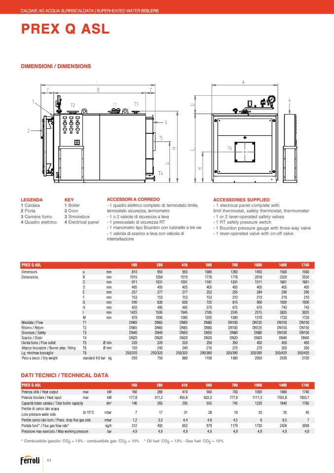 * Combustibile gasolio: CO2 = 13% - combustibile gas: CO2 = 10%