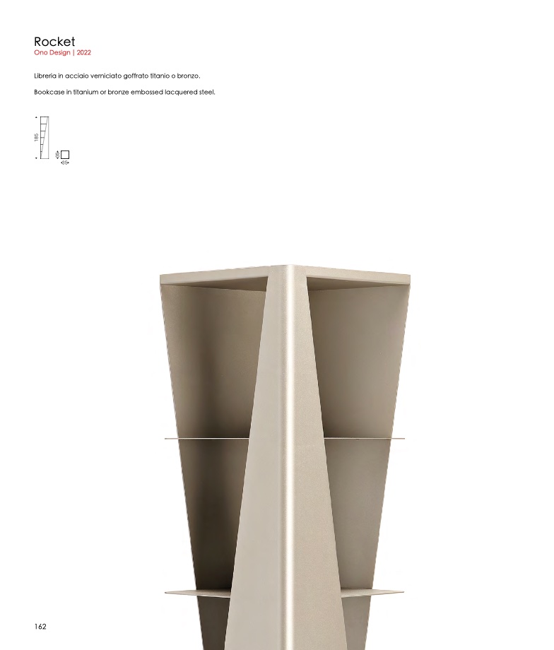Bookcase in titanium or bronze embossed lacquered steel.