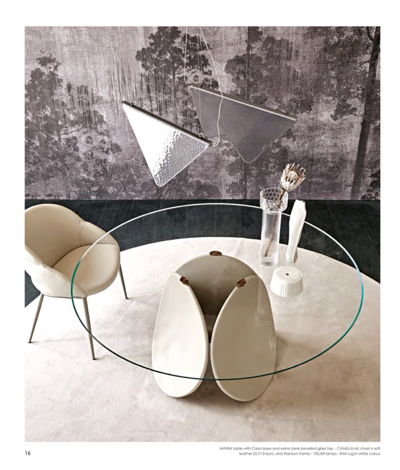 MAXIM table with Cairo base and extra clear bevelled glass top - CAMILLA ML chair in soft