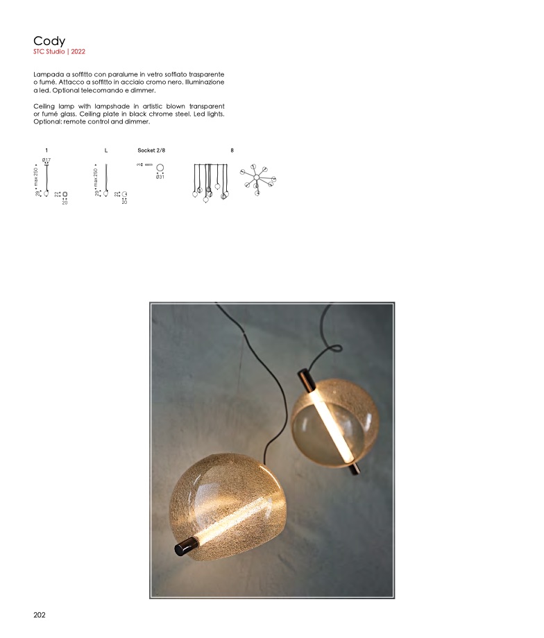 é glass. Ceiling plate in black chrome steel. Led lights.