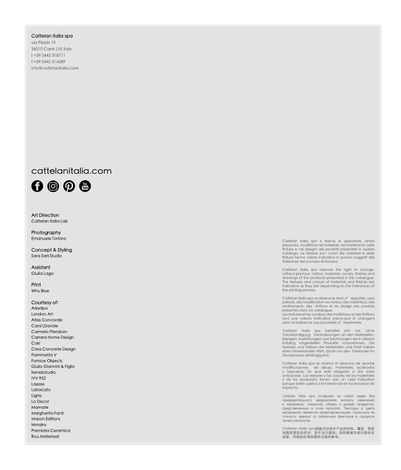Cattelan Italia spa保留对目录中产品的材料、覆面、饰面
