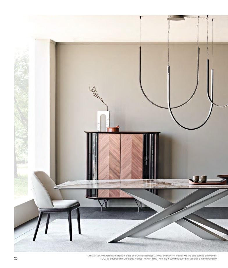 COSTES sideboard in Canaletto walnut - NAHUN lamp - KIMI rug in salvia colour – ETOILE console in brushed grey