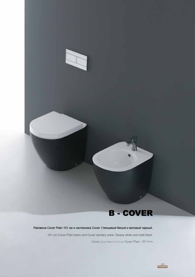 101 cm Cover Plain basin and Cover sanitary ware. Glossy white and matt black.