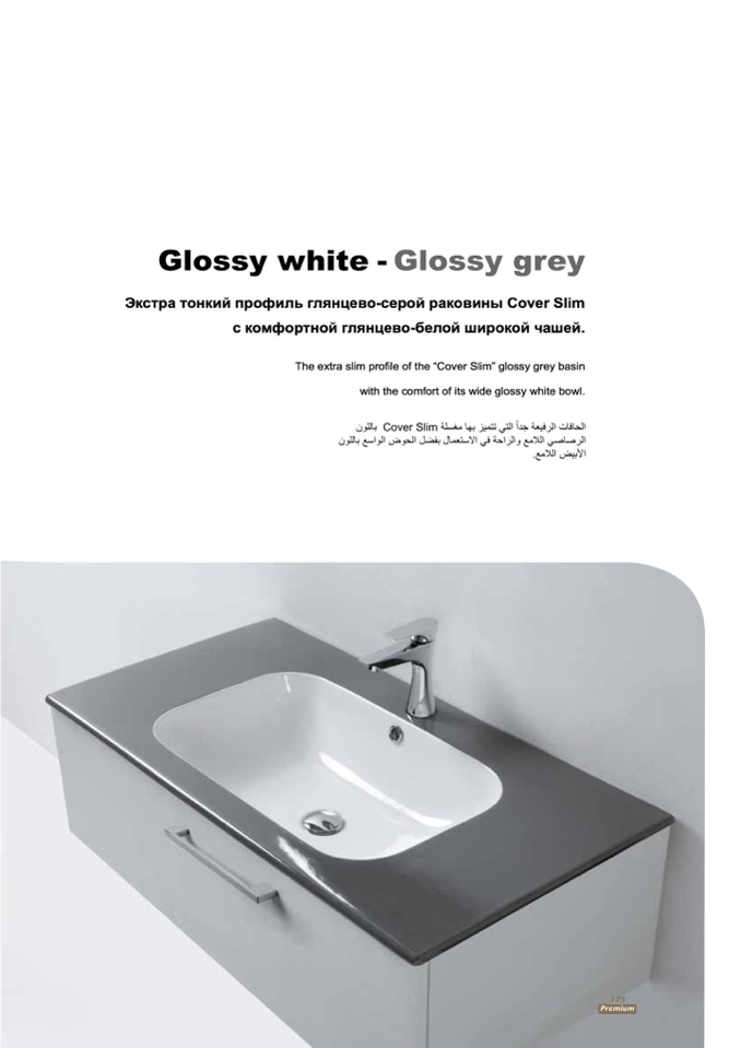 The extra slim profile of the “Cover Slim” glossy grey basin