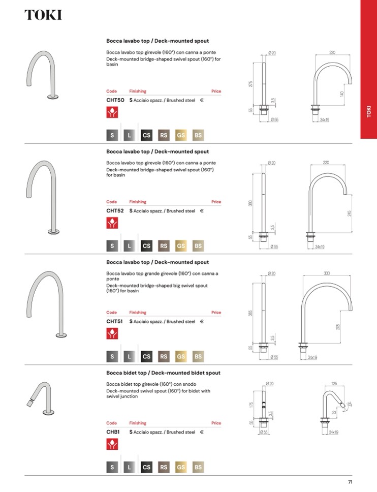 Deck-mounted bridge-shaped swivel spout (160°) for