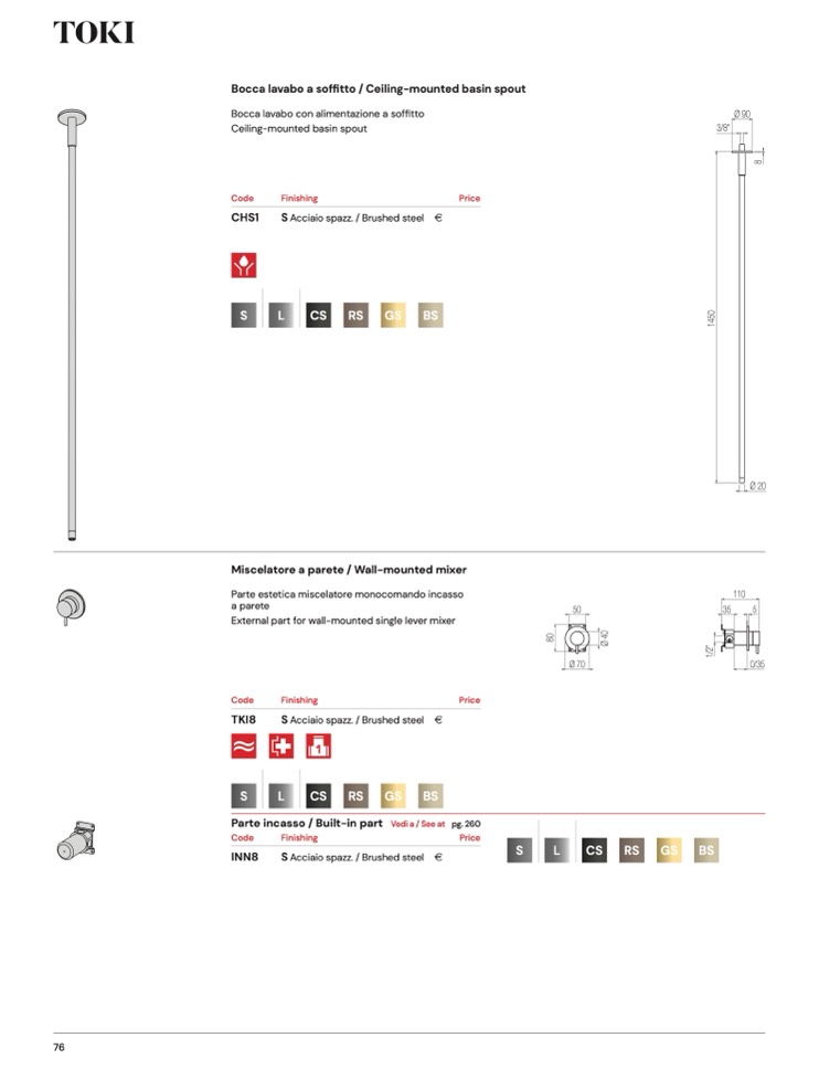 Bocca lavabo a soffitto / Ceiling-mounted basin spout