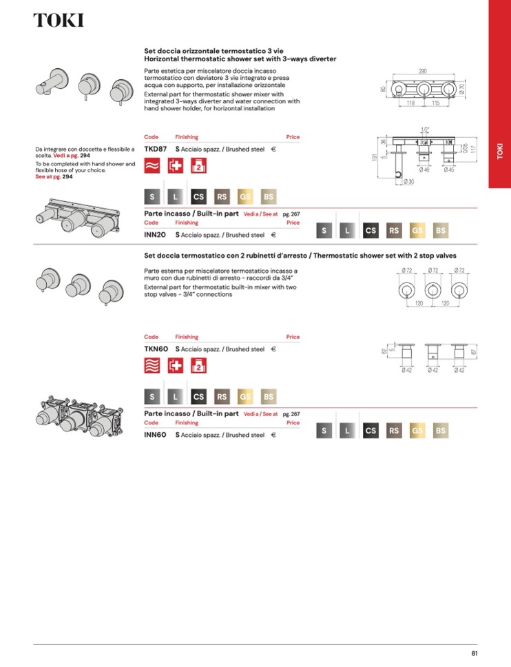 Set doccia termostatico con 2 rubinetti d’arresto / Thermostatic shower set with 2 stop valves