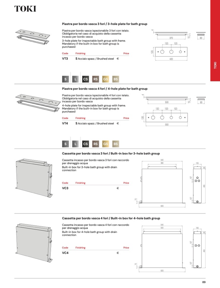 Cassetta per bordo vasca 4 fori / Built-in box for 4-hole bath group
