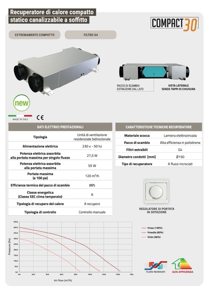 Recuperatore di calore compatto
