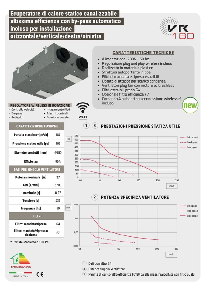 Perdite di carico filtro efficienza F7 80 pa alla massima portata con filtro pulito