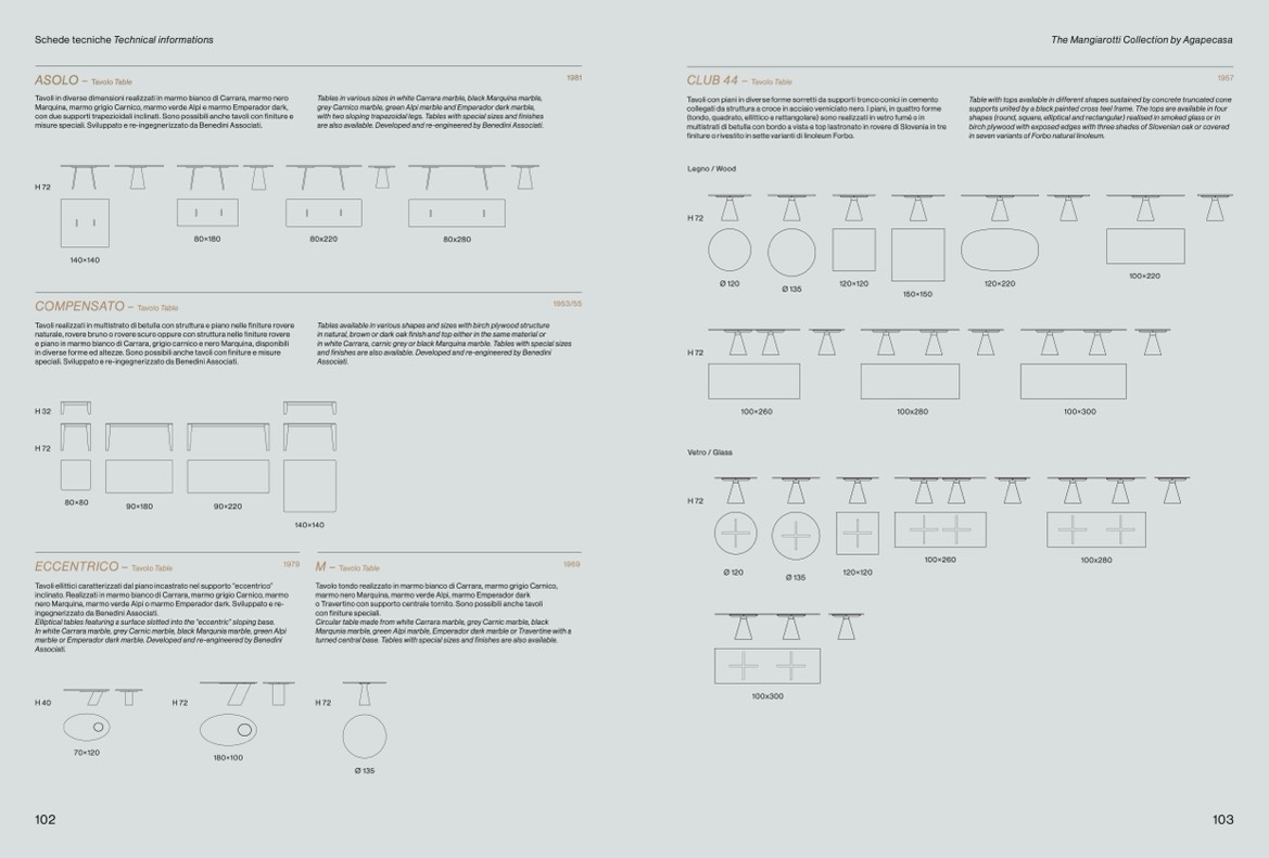 in white Carrara, carnic grey or black Marquina marble. Tables with special sizes