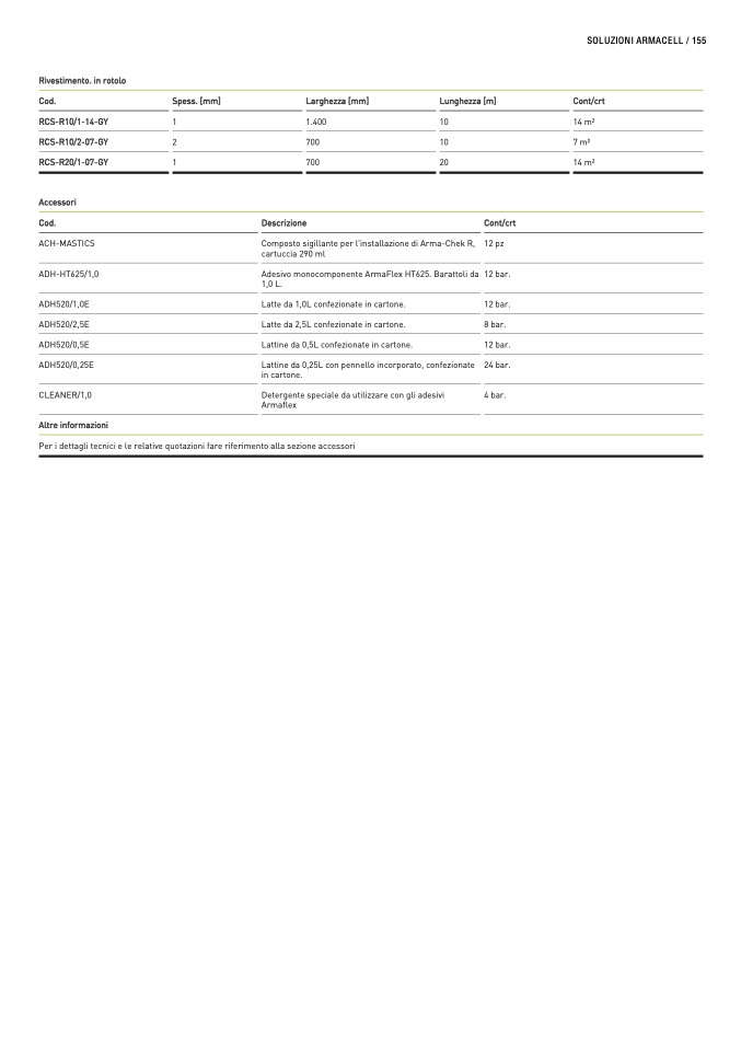 Per i dettagli tecnici e le relative quotazioni fare riferimento alla sezione accessori