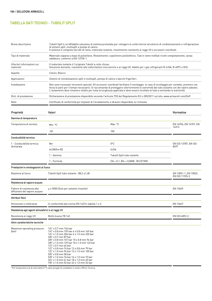 Dichiarazione di prestazione disponibile secondo l'articolo 7(3) del Regolamento EU n.305/2011 sul sito: www.armacell.com/DoP