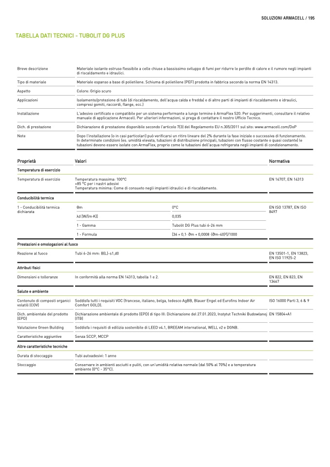 Dichiarazione di prestazione disponibile secondo l'articolo 7(3) del Regolamento EU n.305/2011 sul sito: www.armacell.com/DoP