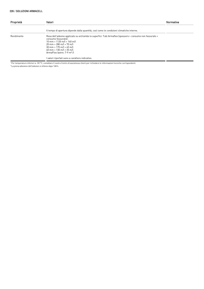 Resa dell'adesivo applicato su entrambe le superfici: Tubi Armaflex (spessore > consumo non fessurato >