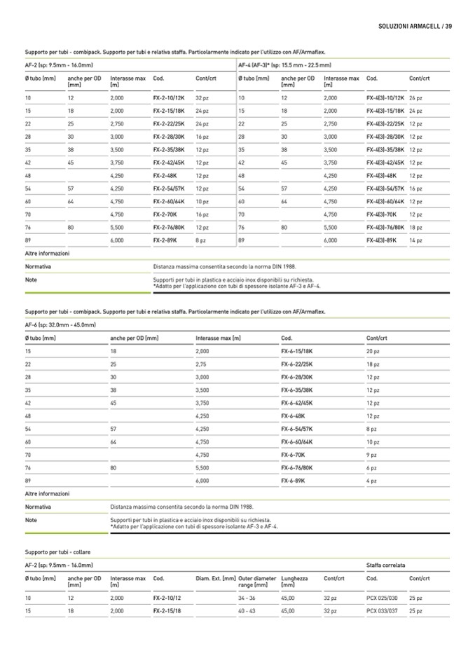 Supporto per tubi - combipack. Supporto per tubi e relativa staffa. Particolarmente indicato per l'utilizzo con AF/Armaflex.