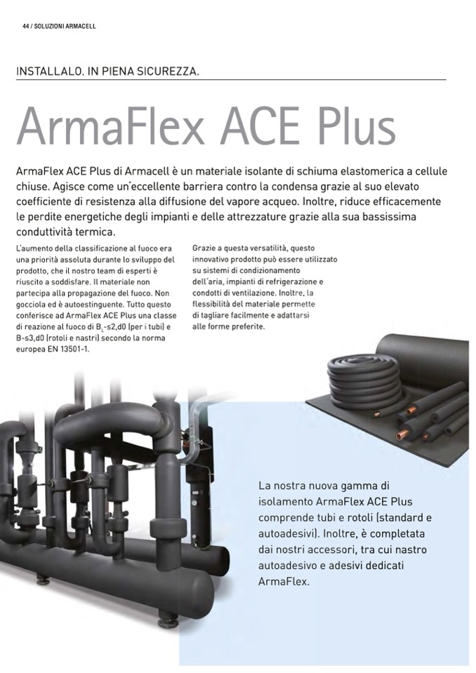 ArmaFlex ACE Plus di Armacell è un materiale isolante di schiuma elastomerica a cellule