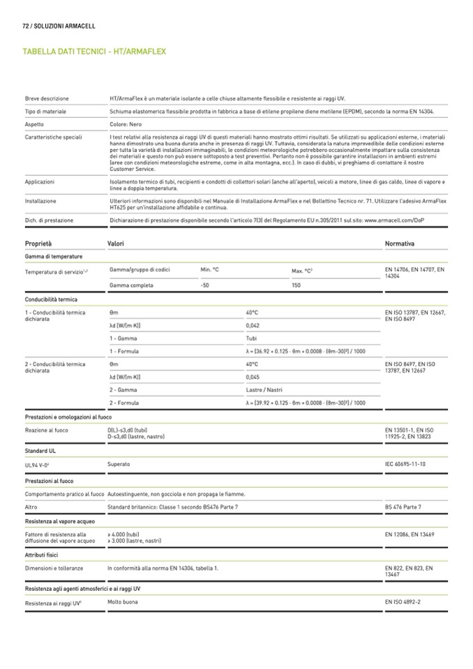 Dichiarazione di prestazione disponibile secondo l'articolo 7(3) del Regolamento EU n.305/2011 sul sito: www.armacell.com/DoP