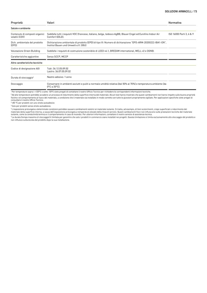 isolante, come la conduttività termica e il comportamento in caso di incendio. Per ulteriori informazioni, contattare il nostro servizio di assistenza tecnica.