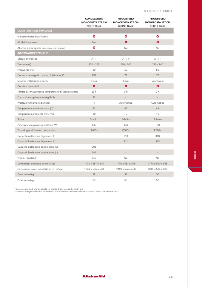 Il consumo energetico effettivo dipende dal posizionamento dell’elettrodomestico e dall’utilizzo che ne viene fatto.