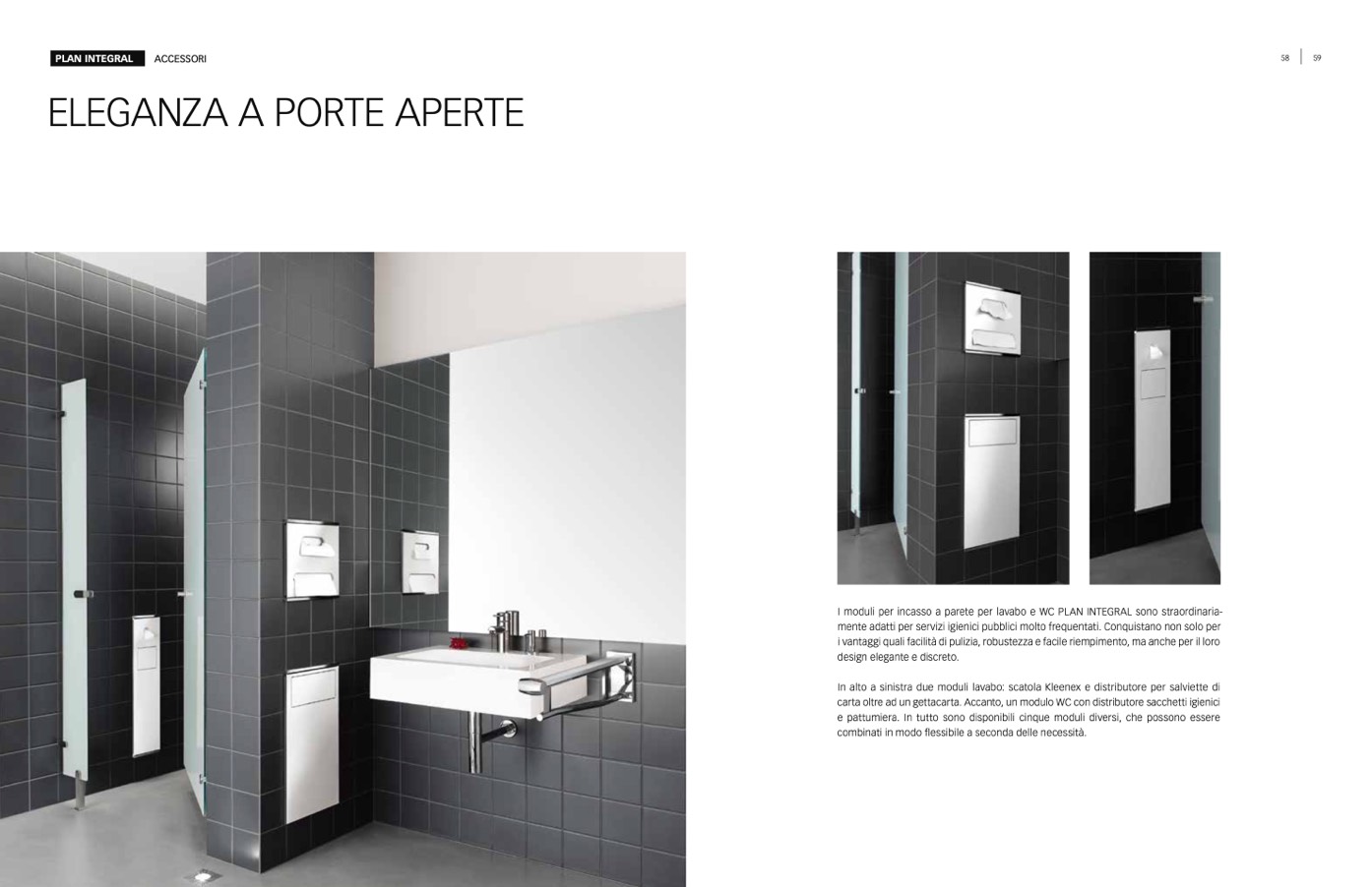In alto a sinistra due moduli lavabo: scatola Kleenex e distributore per salviette di