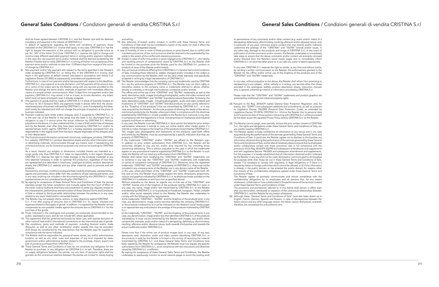 The payment of goods shall be made at CRISTINA S.r.l.’s place of business located on