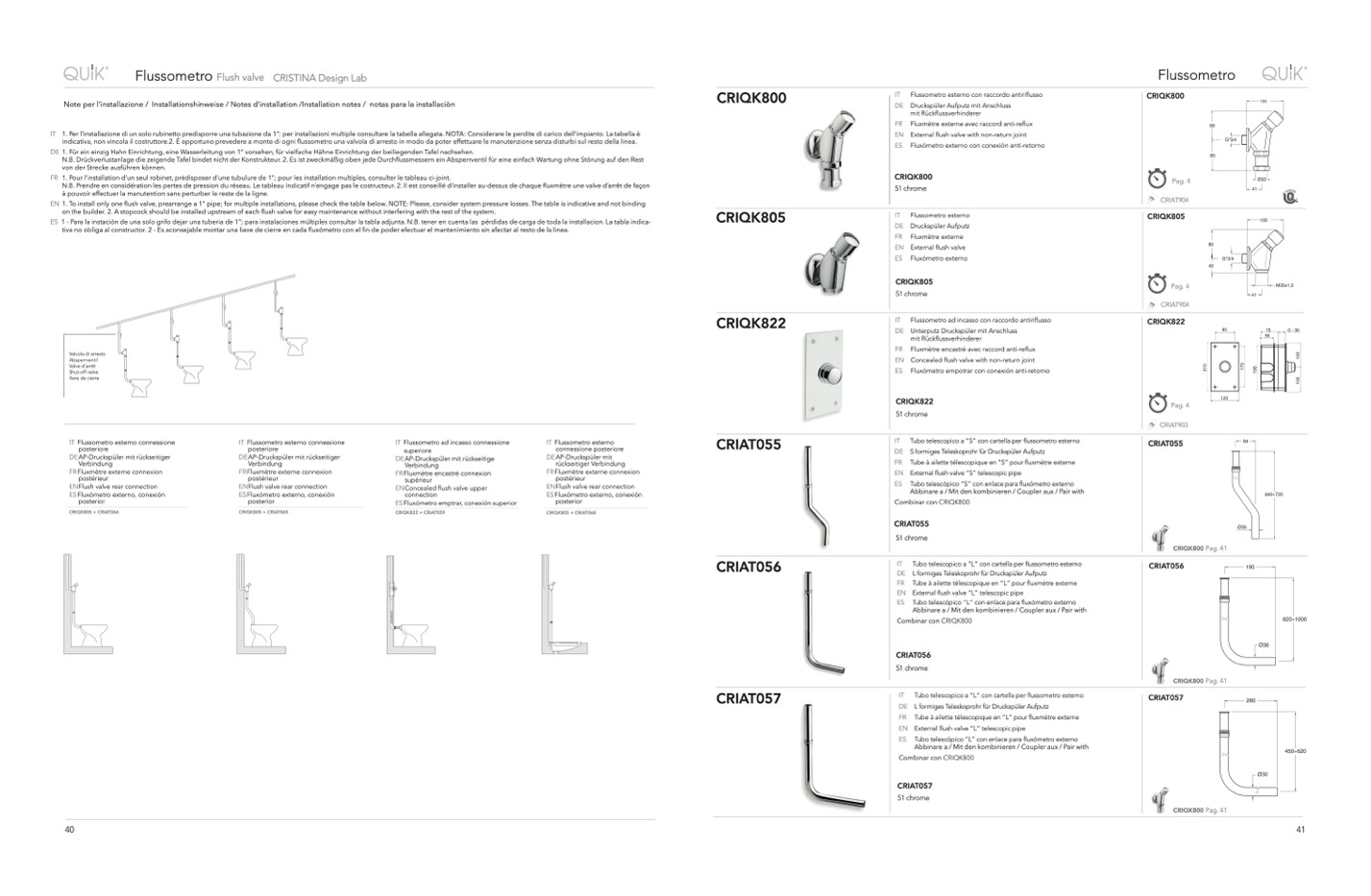 EN 1. To install only one flush valve, prearrange a 1” pipe; for multiple installations, please check the table below. NOTE: Please, consider system pressure losses. The table is indicative and not binding