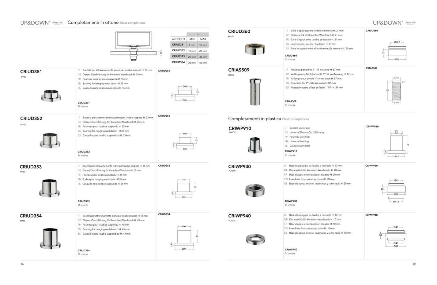 IT Boccola per attraversamento piano per lavabo sospeso H. 45 mm