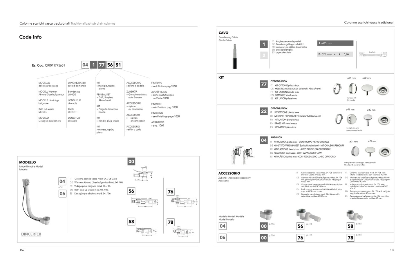 IT Colonna scarico vasca mod. 04. / 06 Cavo