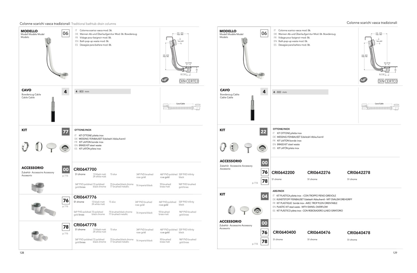 Colonne scarichi vasca tradizionali Traditional bathtub drain columns