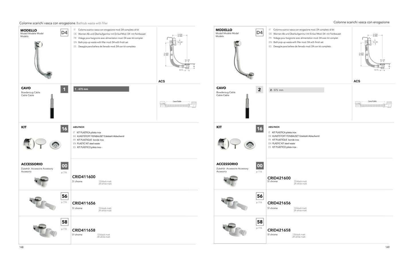 Colonne scarichi vasca con erogazione Bathtub waste with filler