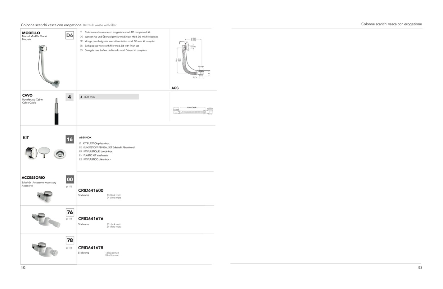 Colonne scarichi vasca con erogazione Bathtub waste with filler