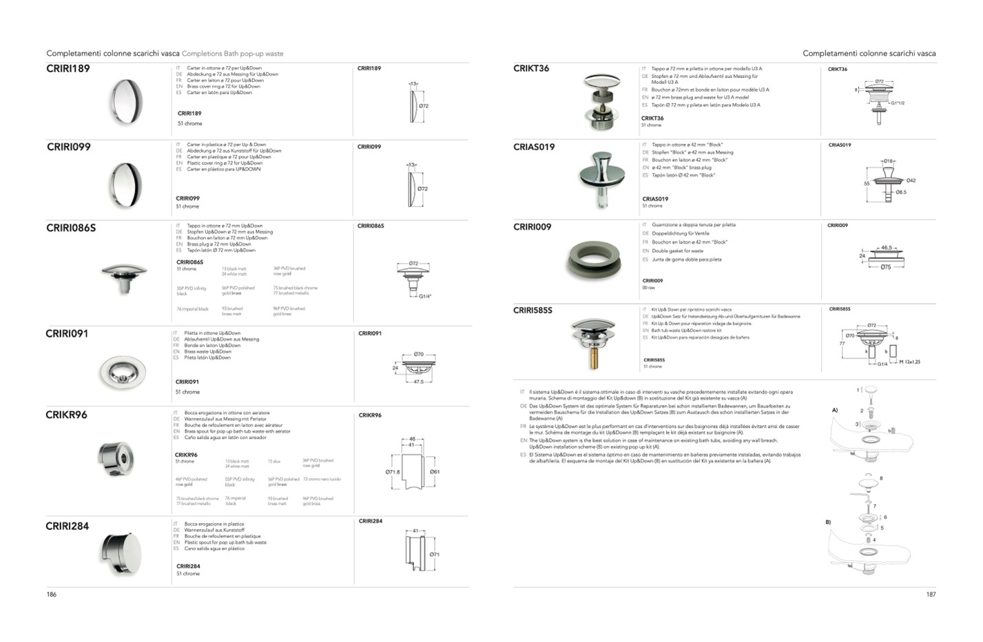 Completamenti colonne scarichi vasca Completions Bath pop-up waste