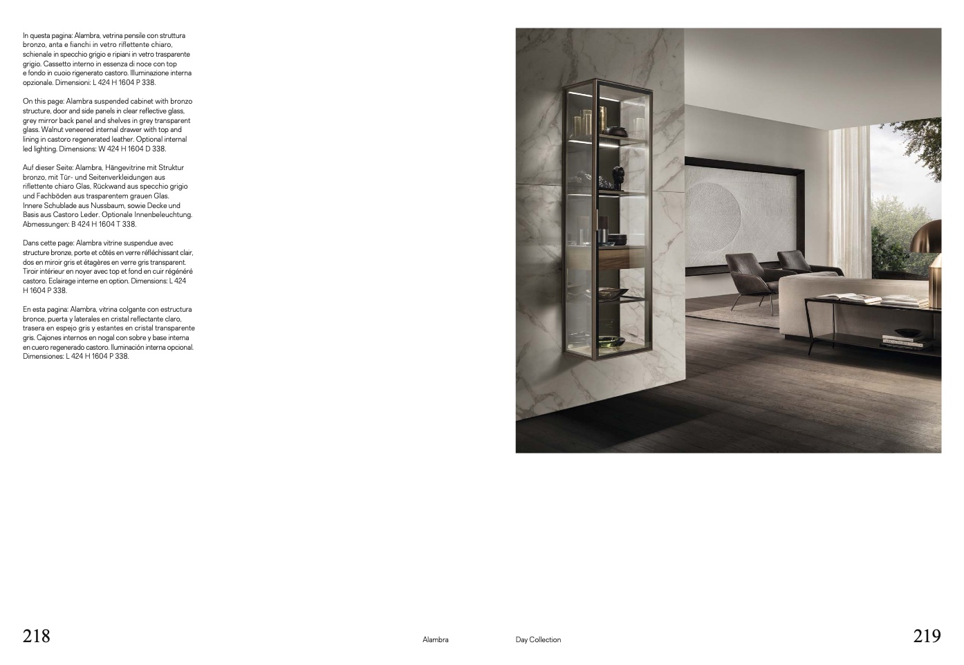 bronzo, anta e fianchi in vetro riflettente chiaro,