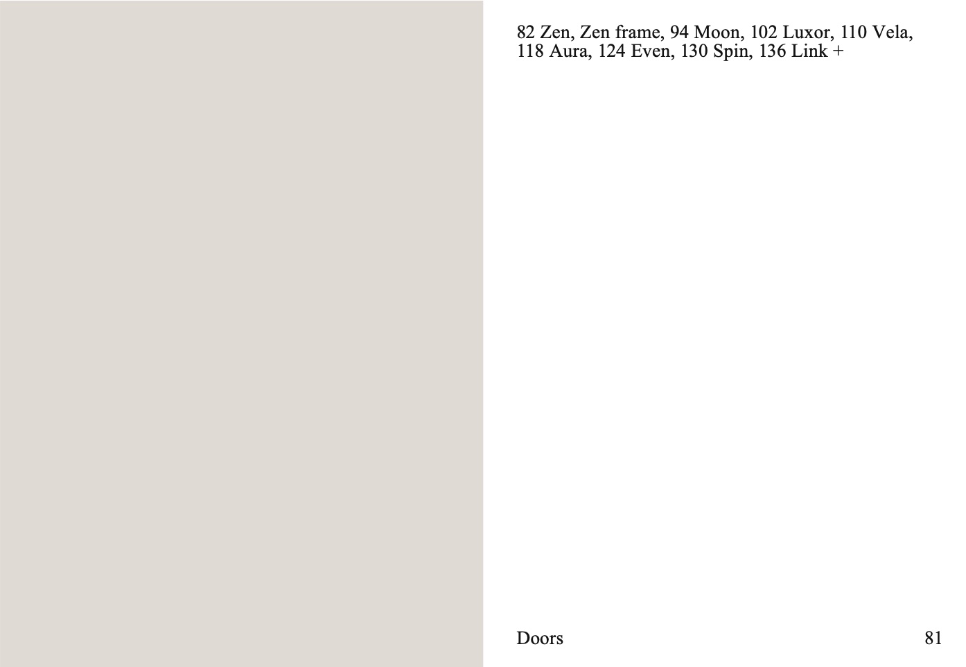 82 Zen, Zen frame, 94 Moon, 102 Luxor, 110 Vela,