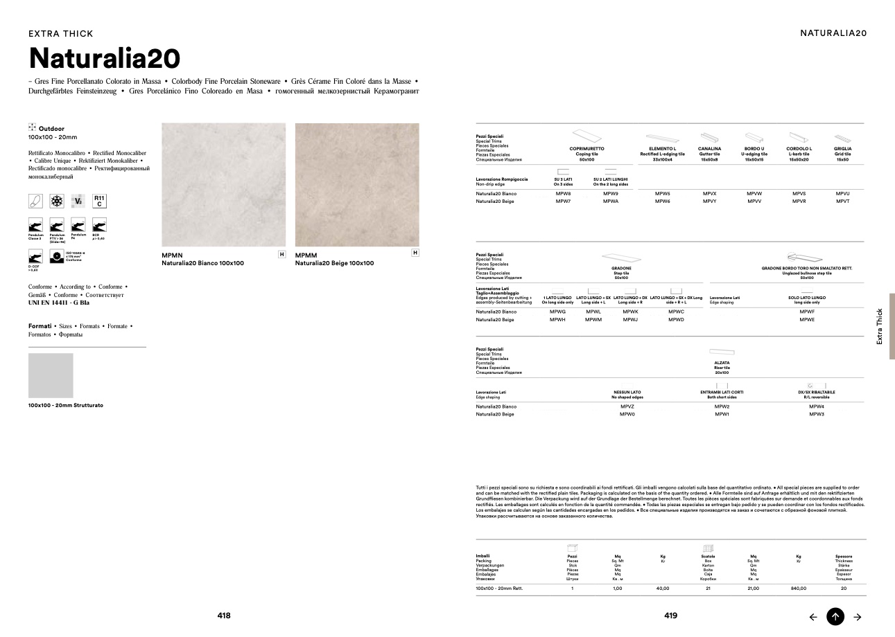 Tutti i pezzi speciali sono su richiesta e sono coordinabili ai fondi rettificati. Gli imballi vengono calcolati sulla base del quantitativo ordinato. • All special pieces are supplied to order