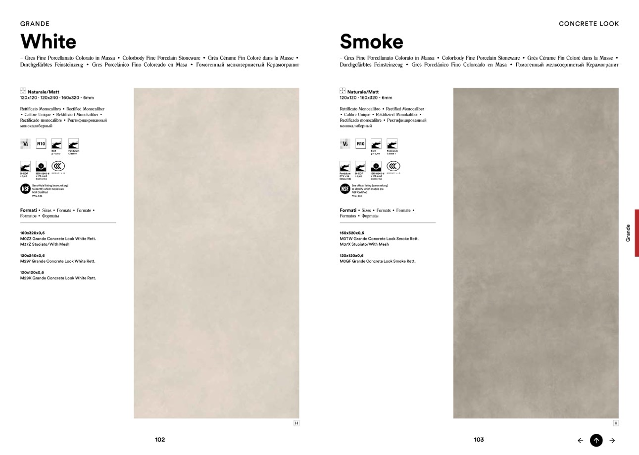 Durchgefärbtes Feinsteinzeug • Gres Porcelánico Fino Coloreado en Masa • Гомогенный мелкозернистый Керамогранит