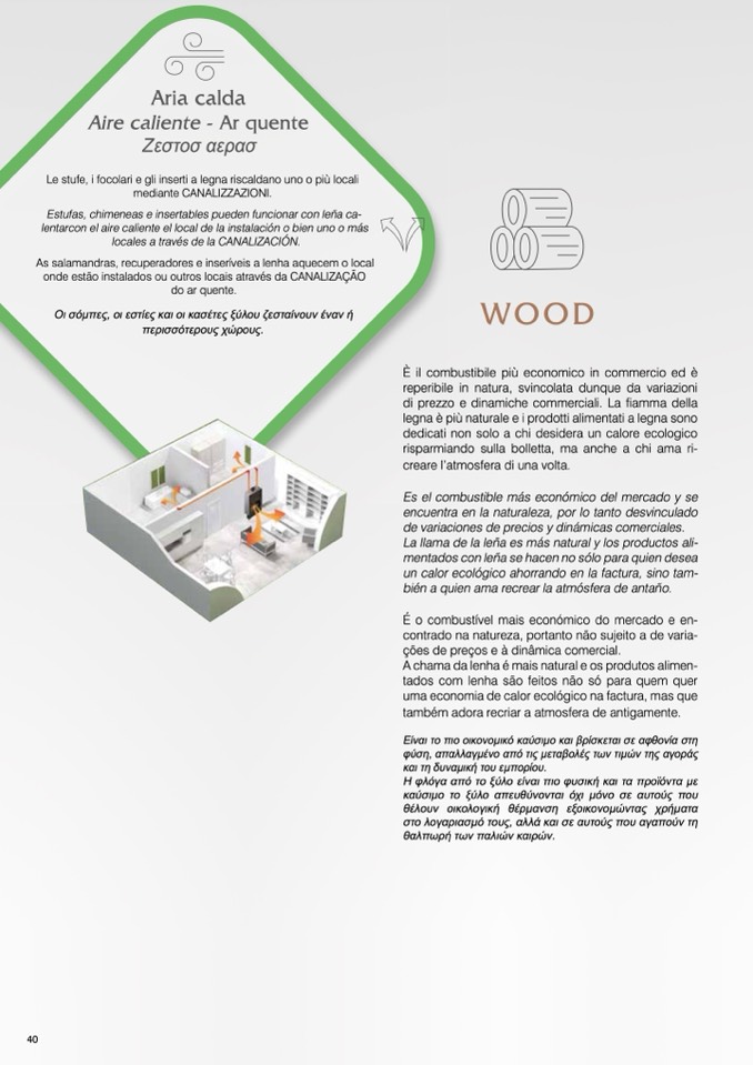 Le stufe, i focolari e gli inserti a legna riscaldano uno o più locali