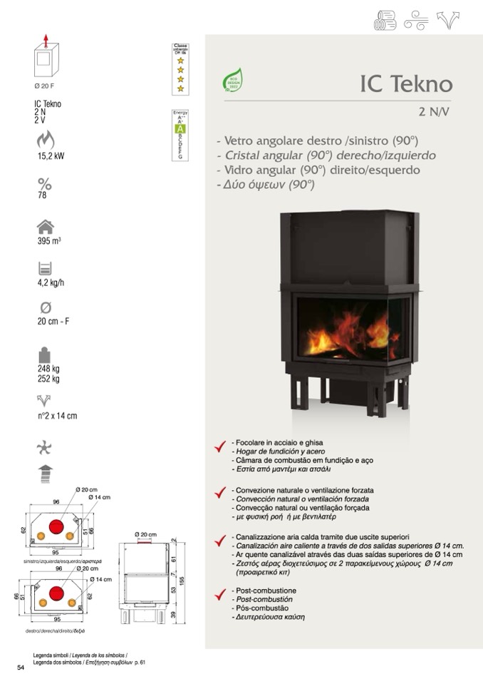 - Ar quente canalizável através das duas saídas superiores de Ø 14 cm