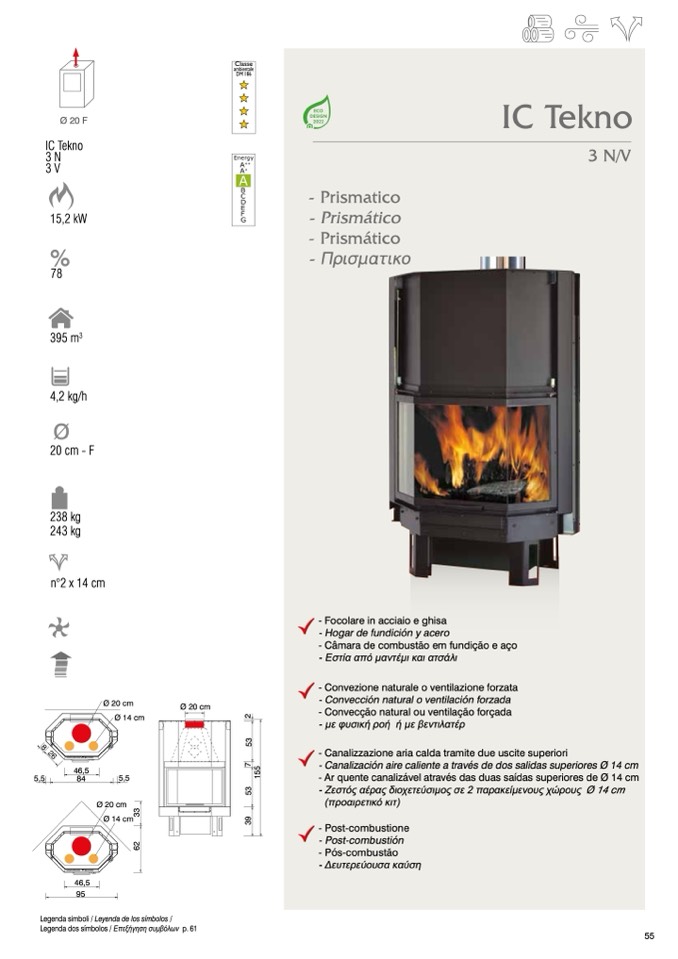 - Ar quente canalizável através das duas saídas superiores de Ø 14 cm