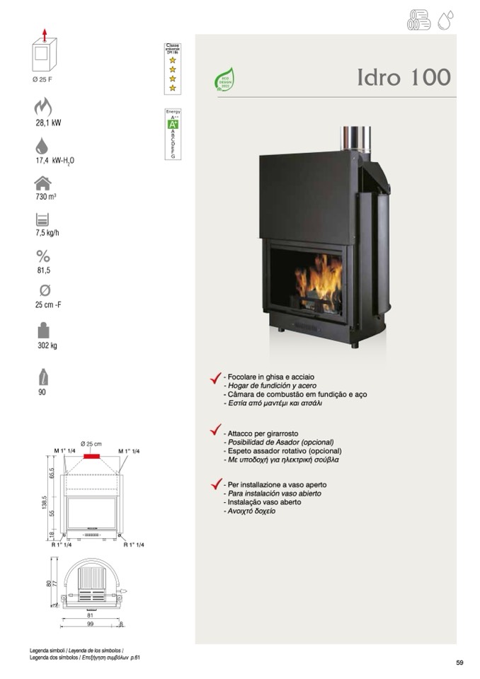 - Focolare in ghisa e acciaio