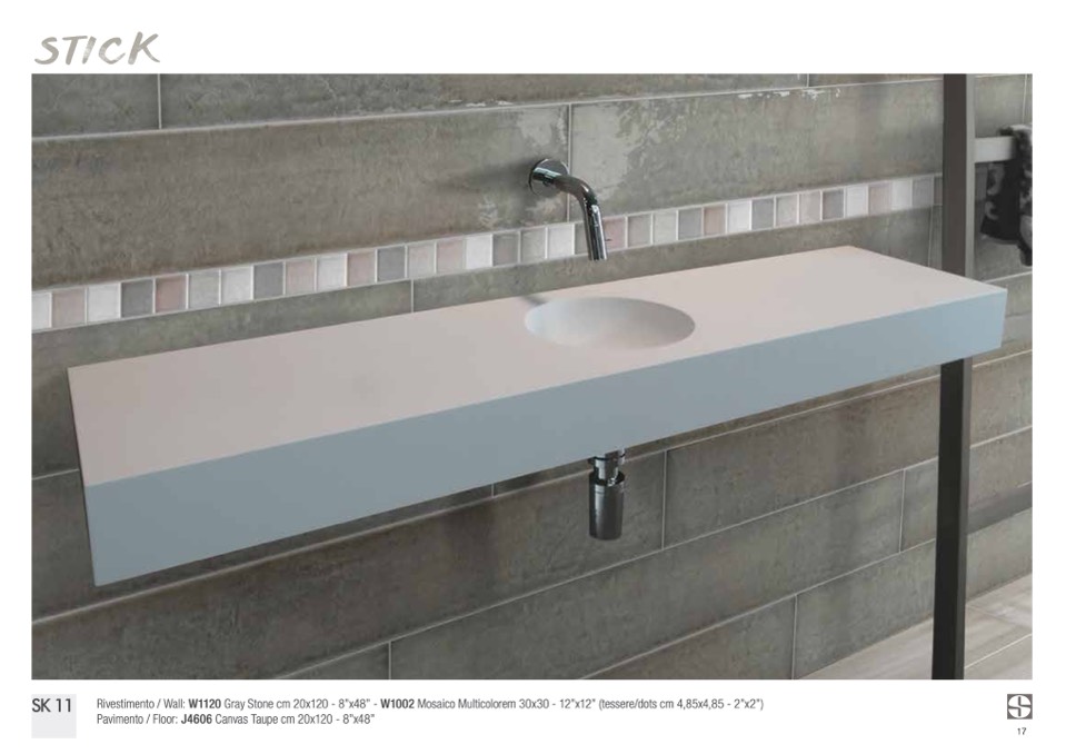 Rivestimento / Wall: W1120 Gray Stone cm 20x120 - 8”x48” - W1002 Mosaico Multicolorem 30x30 - 12”x12” (tessere/dots cm 4,85x4,85 - 2”x2”)