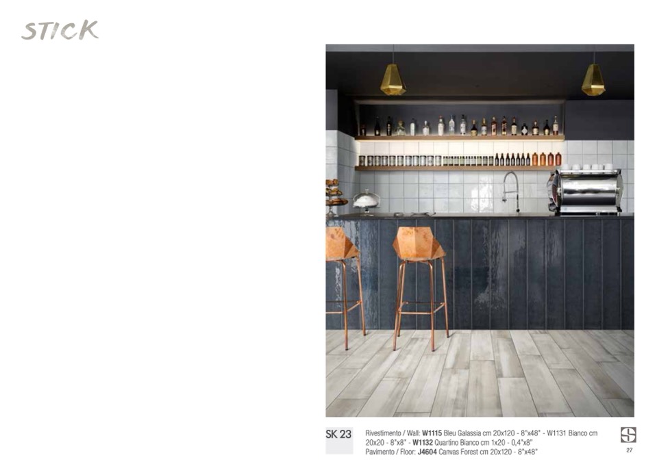 Rivestimento / Wall: W1115 Bleu Galassia cm 20x120 - 8”x48” - W1131 Bianco cm