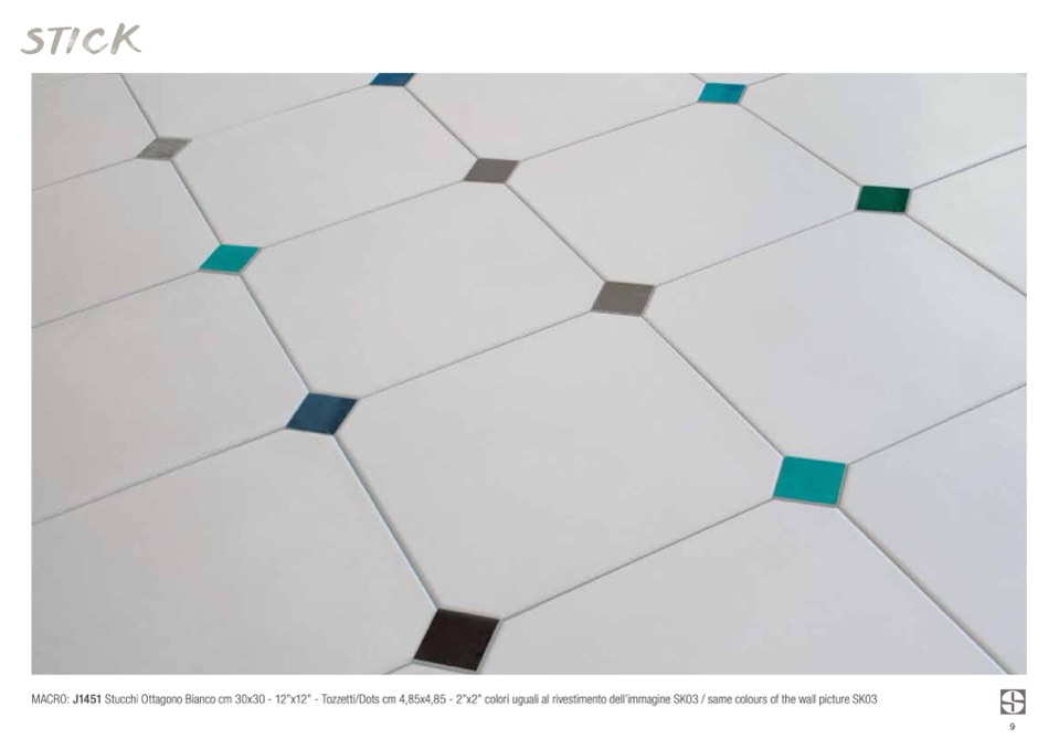MACRO: J1451 Stucchi Ottagono Bianco cm 30x30 - 12”x12” - Tozzetti/Dots cm 4,85x4,85 - 2”x2” colori uguali al rivestimento dell’immagine SK03 / same colours of the wall picture SK03