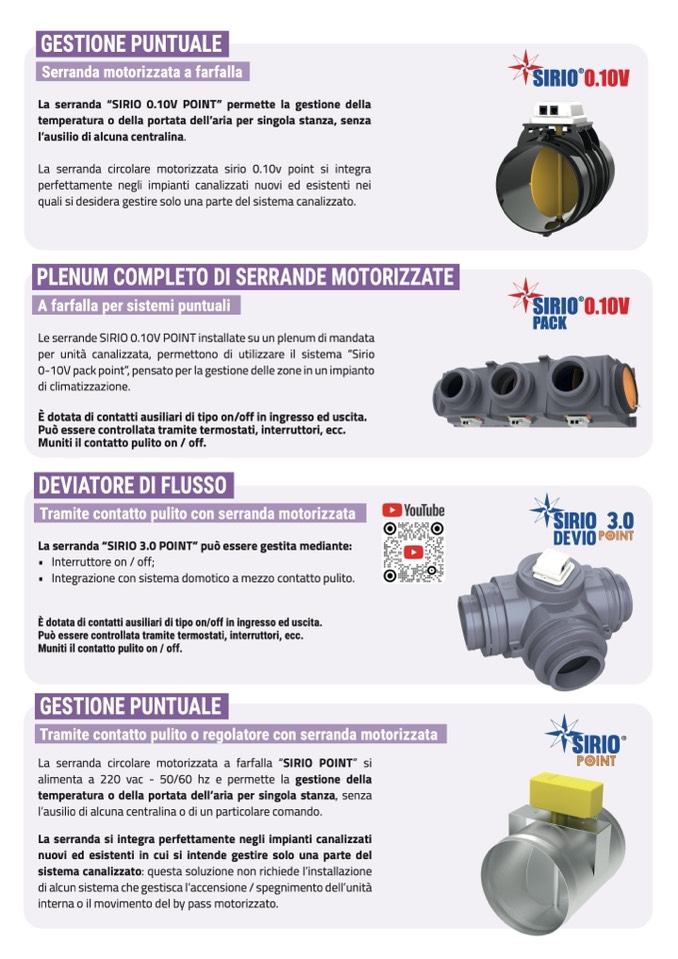 per unità canalizzata, permettono di utilizzare il sistema “Sirio